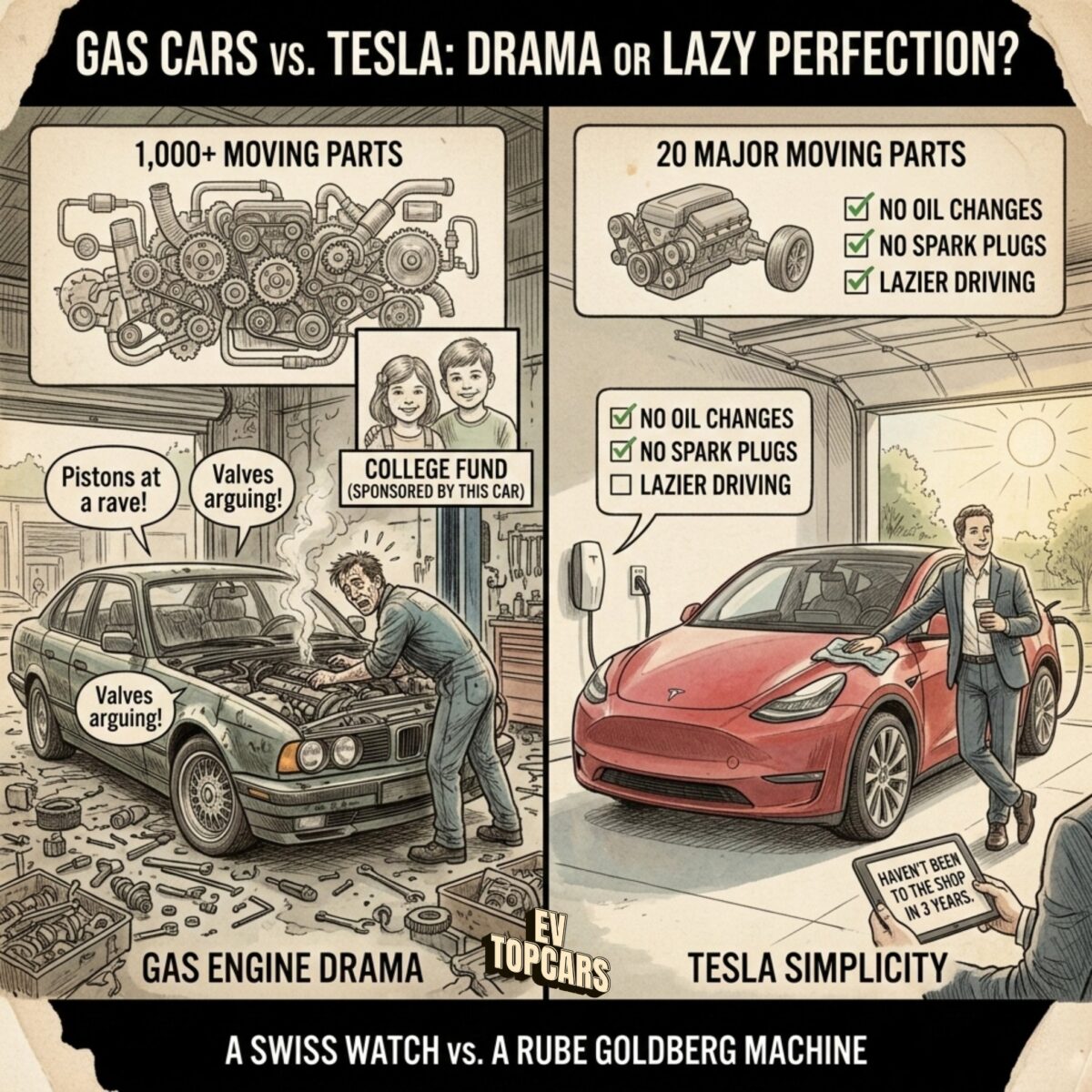 Who else is tired of their gas car acting like it has more drama than a reality TV show? Drop a ⚡ if you’re ready to join the “20-parts gang” and leave the 1,000-part soap opera behind.