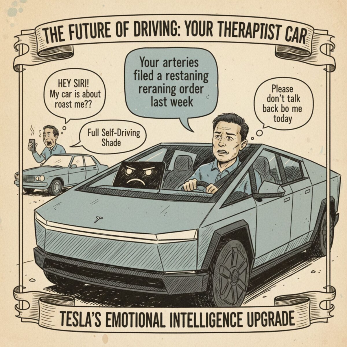 Tesla really out here turning every drive into a therapy session you didn’t ask for.